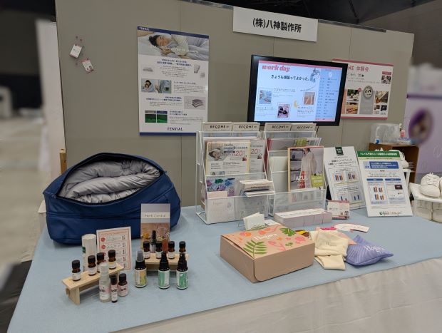 医療現場でご活躍される皆さまに、癒しやリフレッシュの時間をお届けしたいという思いから、「ご褒美時間」をテーマにブースを展開。取り扱い製品の展示や体験コーナーも設けました。