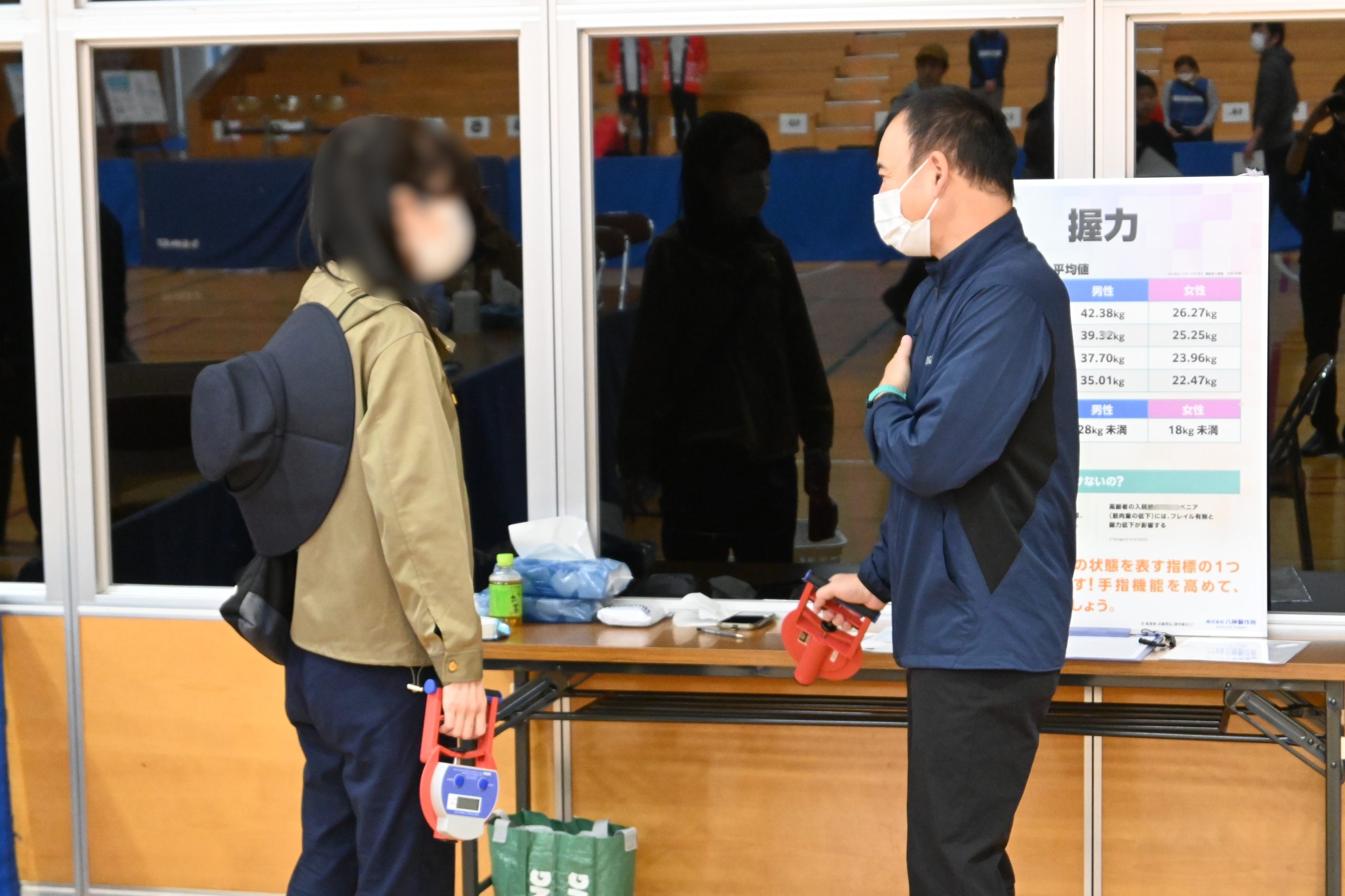 ご自身の体の状態を把握していただき、日常生活に取り入れやすいトレーニング方法をご紹介することで、筋力低下などのフレイル予防に役立てていただく機会となりました。