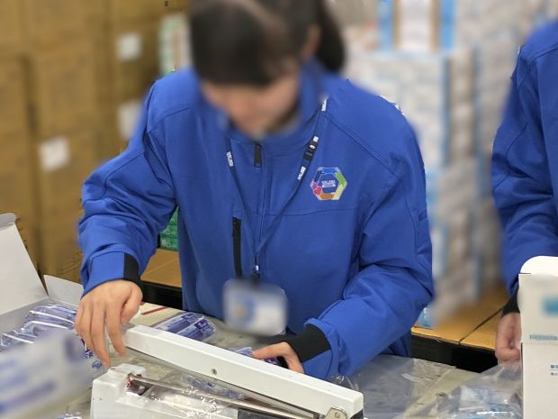 続いて、医療機器専門商社の実際の商売の流れがイメージできるよう、社員が病院の先生役となり、生徒さんが営業担当として商品の提案を行う営業ロールプレイングをはじめ、見積作成、受注入力、商品のピッキング作業などを体験していただきました。