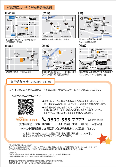 よりそうだん各拠点での参加人数には限りがございますので、お早めのお申し込みをおすすめいたします。
